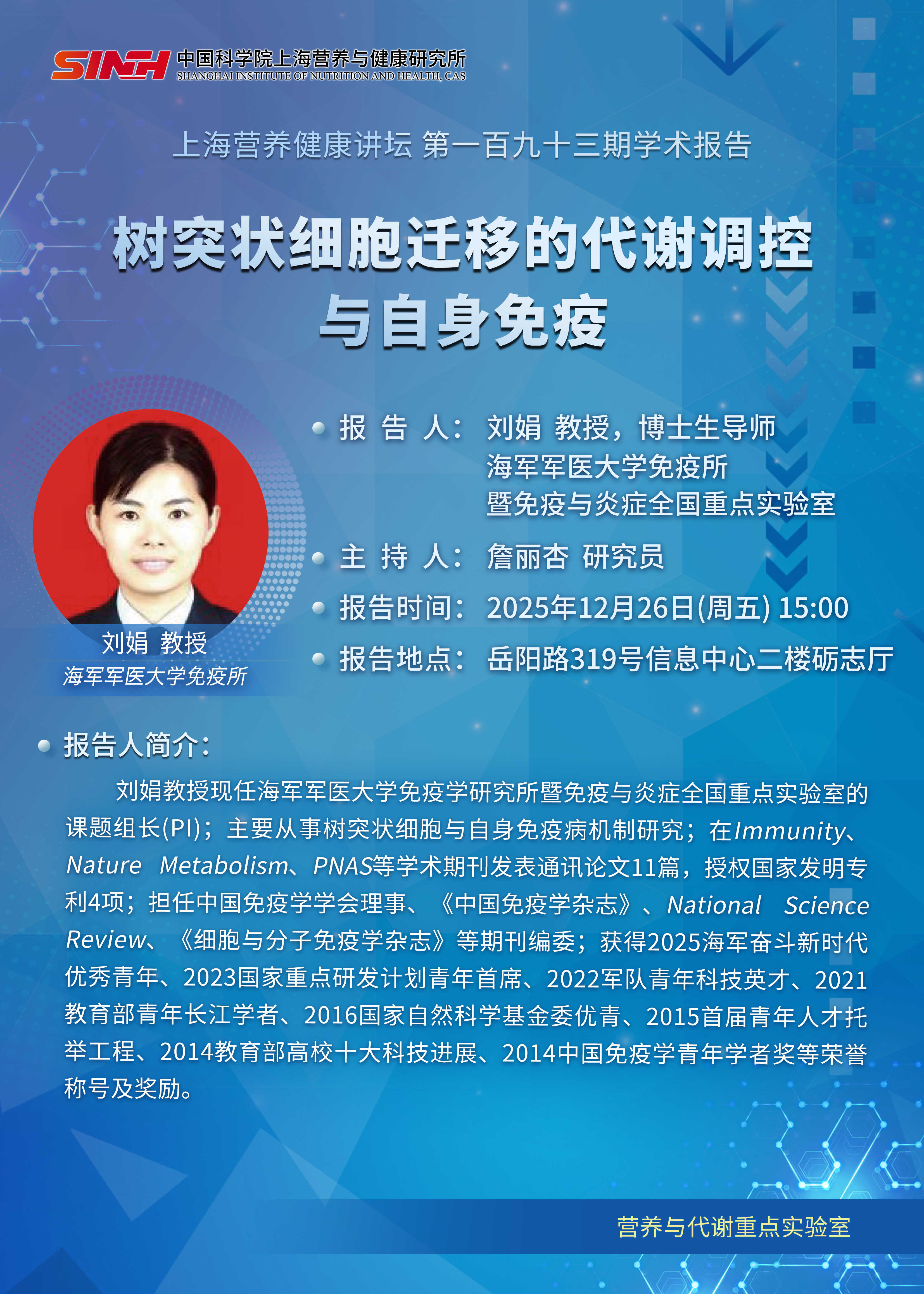 12月26日|樹突狀細胞遷移的代謝調控與自身免疫-上海營養(yǎng)健康講壇